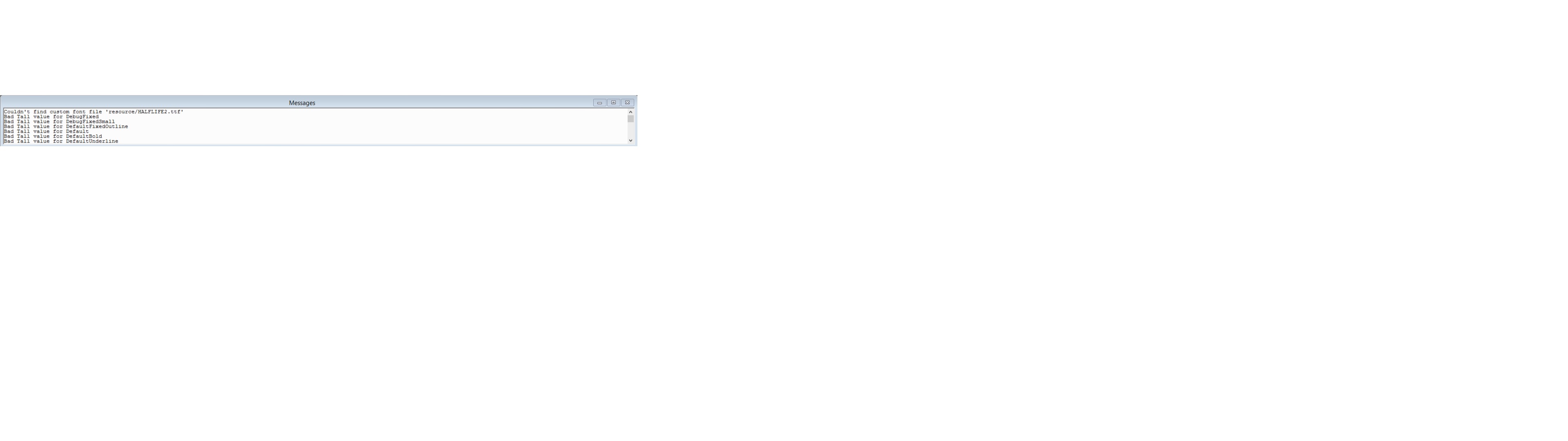 Ich habe einen Screenshot, der anzeigt, was kurzzeitig in dem Log vom Hammer Editor ist, während er die 5 Sekunden da ist.
