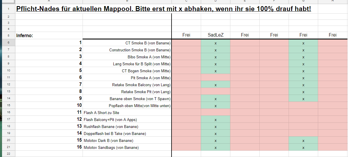 Sobald ihr die Nades beherrscht für die entsprechende stelle, sollt ihr in der Tabelle ein X hinzufügen.